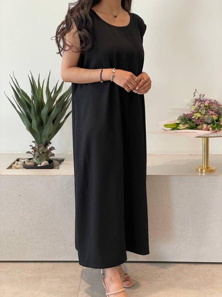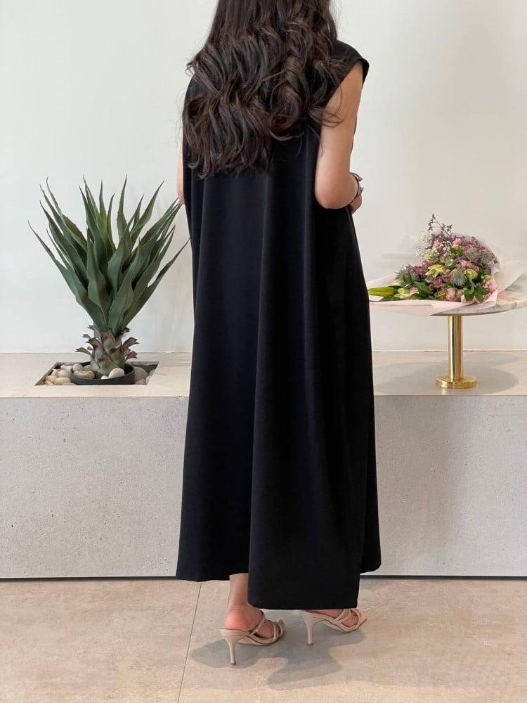 ✨ تألقي بأناقة خفية مع فستان رزان المصنوع من كريب ناعم وبارد، مثالي للبس تحت العباية